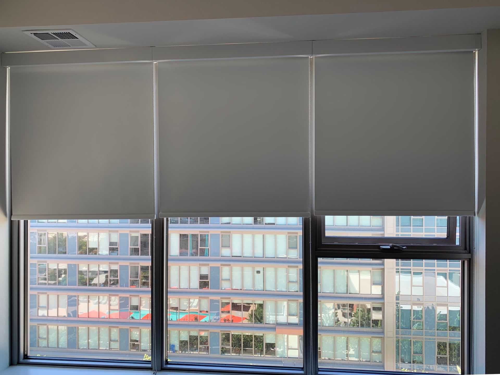 Sleek, sophisticated roller and solar shades provide UV protection daily or instant room darkening for video calls and presentations. These commercial window treatments come in various sizes, fabrics, and control options, making it easy to find a style that suits your business.